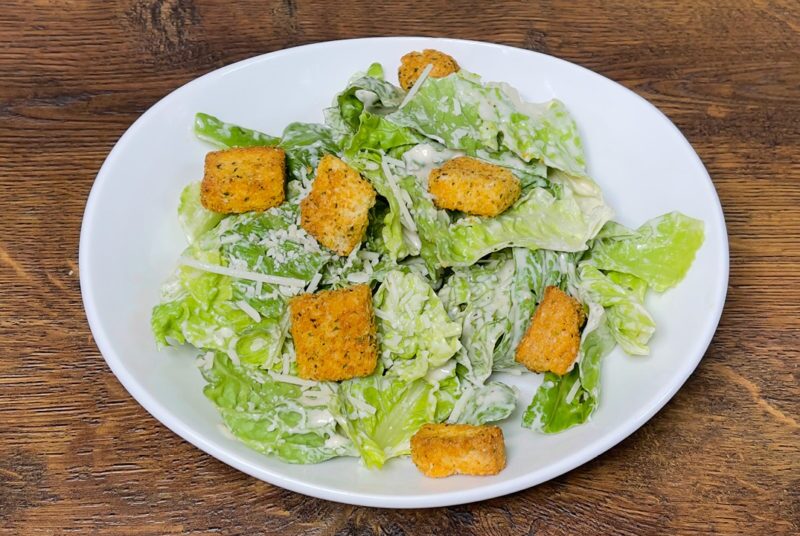 Grilled chicken breast, shredded Parmesan, croutons, romaine, Caesar dressing.
