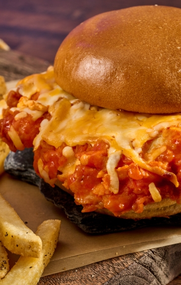 Slow-roasted prime rib, sauteed onions, Swiss. Served on an Amoroso’s hoagie roll. With Au jus and housemade horsey sauce on the side.