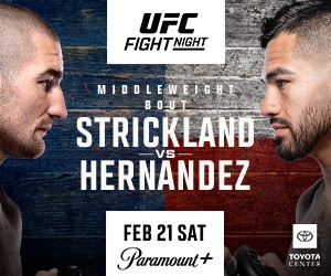 Join us Saturday, February 21st at 8 PM EST for UFC Fight Night: Strickland vs Hernandez.